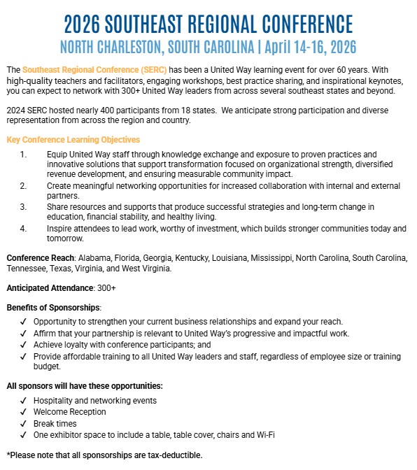 Direct questions regarding in-kind sponsorships to Becky Booker, bbooker@unitedwaysal.org or 334-694-7011.