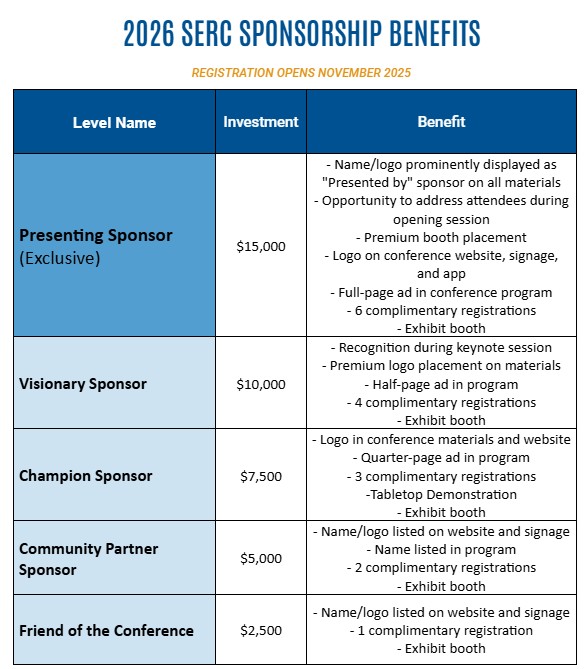 If you are unable to attend the conference, the SERC team can set up a display table for you.